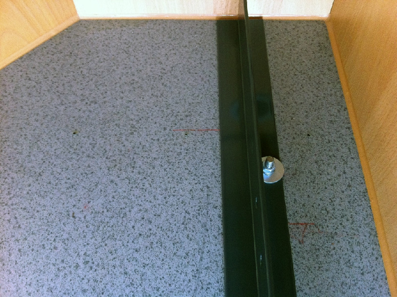 Um die Lasten bei Vollauszug abzufangen, habe ich mir am vorderen Schienenende für jede Schiene eine V2A-Platte mit angeschweisstem Gewindebolzen unter das Bodenblech montieren lassen, keine grosse Geschichte, das hat ein Karosseriebetrieb montiert, mit Sikaflex angeklebt, mit Karosseriedichtmasse abgedichtet und danach mit Unterbodenschutz eingesprüht.