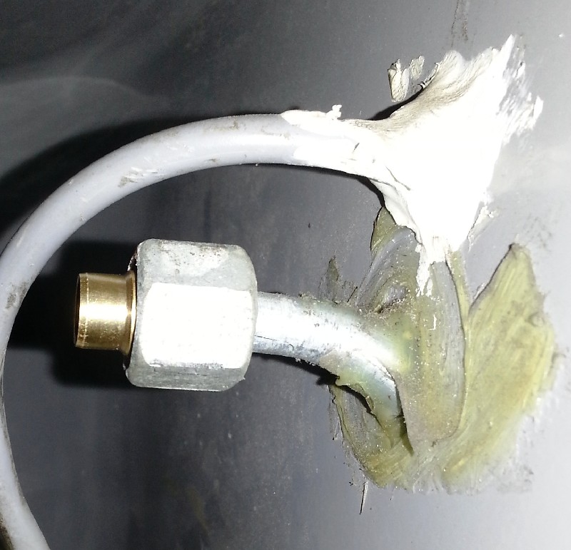 leg das gelbe Teil(Schneidring) zur Seite und schliesse den Schlauch an. Jetzt gibt es nur 2 Möglichkeiten :Du nimmst etwas Seifenwasserund pinselst die Verschraubung damit ein, Hahn auf und wenn es nicht blubbert, hast du Glück, denn dann ist es dicht und du kannst den Gasmann ranlassen. Die Änderung ist ohnehin abnahmepflichtig Der drückt die Anlage sowiso noch mal ab. Blubbert es, hilft nur den alten Schneidring abscheiden und Neuanschluss mit dem orig. Schneidring. Wenn du dir das nicht zutraust, geh zum Händler. Alles andere ist Kalter Kaffee.
