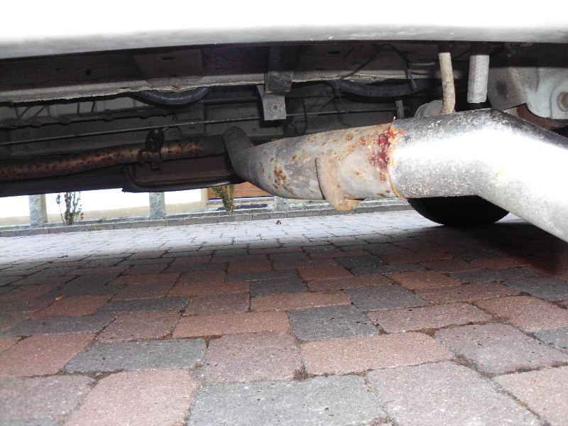 Bei den Wohnmobilen auf "Ford-Transit Frontantrieb" sind die Auspuff-Endrohre "serienmäßig ab Ford" nach links abgeknickt und enden vor dem linken Hinterrad.