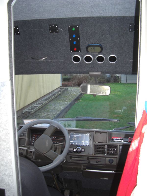 Möönsch, sag bloß: Massiv Plastik, kein Kunststoffimitat, nein noch nicht einmal Wurzelholzimitat, boah ey. :D Schickes Hellschwarz, Volker :wink: Unseres ist momentan noch nackig :oops: , nicht mal Wurzelholz :eek: ![]() wird sich aber bald bessern, versprochen ;D . ![]() Hallo, hier mein Cockpit: ![]() CZ100 Ohje, sieht das alles ordentlich aus. So sah es bei Auslieferung bei uns aus. Inzwischen leben wir dort :D Und nein, das zeig ich nicht :oops: So sieht's bei mir aus - ausbaufähig und dank ein paar Tips aus dem Forum mit 2 Tollen Bechern . ![]() So ist meine Einrichtung, Ipad liefert Musik und Navigation und ist über das Pioneer DAB-Gerät angeschlossen (Stromversorgung und Wiedergabe + Musiksteuerung). ![]() Das einzige Bild das es gibt ! ![]() Soooo, da ich jetzt auch dazu gehöre, darf ich jetzt auch :mrgreen: ![]() :( Noch gar keine wirklichen "Uraltcockpits" dabei. Vom Düsseldorfer, einem alten HY oder einem AL28. Ich glaub, die Zeiten sind vorbei. So, mal sehen ob es funktioniert hat. Arno[album] Und dies ist mein Cockpit, aus meiner Sicht natürlich perfekt... ![]() Rückfahrmonitor- und Bildschirmradio ist meisten nicht sichtbar, da er eingefahren ist. Das Tablet ist eigentlich nur für den Beifahrer und die Dashcam macht sowiso alles automatisch. Für mich als Fahrer sehe ich von meinen zusätzlichen Geräten nur die Navianweisungen auf der Scheibe projeziert vom Hud. Aus meiner Sicht, lenkt mich so nichts von der Strasse ab. Es fehlt nur noch ein guter Getränkehalter und meine hübsche Beifahrerin wollte nicht aufs Foto... Rofalix Ich habe ein 2-DIN Pioneer ADV4400BT ohne Naiv Modul. Das IPad Mini ist da, wo normalerweise der Rückspiegel ist und befindet sich in idealer Position. Navigation geht über das IPAD super gut. Wenn mir jetzt noch jemand verrät, wie man das Bild so einbindet, dass es nicht auf dem Kopf steht, wäre ich sehr dankbar. ![]() Bitte :lol: Dreh die Bilder vor dem Hochladen auf deinem PC franz ![]() Hier mal ein Cockpit von einem alten WoMo ![]() Armaturenbrett soll noch wie die Klappe des Handschuhfach um lackiert werden ... ![]() Doppel-DIN Radio mit Monitor für Rückfahr-Cam und zwei Spannungsanzeigen für Starter / Aufbau -Batt , gekürzter Schaltknauf mit Karbon-Design Griff. oben : Zusatzinstrumente Digital ( Drehzahlmesser | Öldruck | ÖL-Temperatur | Wasser-Temperatur ) Schalter mit Kontrolle für die beiden Kühler-Ventilatoren (blau) und für der Öl-Kühler-Ventilator (rot), Kontrolle-Lampe (grün) für den Kühlschrank (12V-Betrieb) dann hab ichs verkauft...... grüße klaus