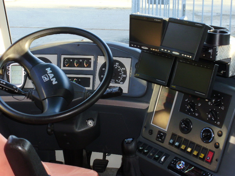 wow, so ein alter fernseher würde mich auf dem armaturenbrett stören.... Bitteschön, Iveco Cockpit. Sehr nett finde ich die beiden Manometer (Luftfederung vorn) :D Wir sind total happy mit unserem "long vehicle" ![]() ![]() Na gut, dann will ich auch mal. :D ![]()
