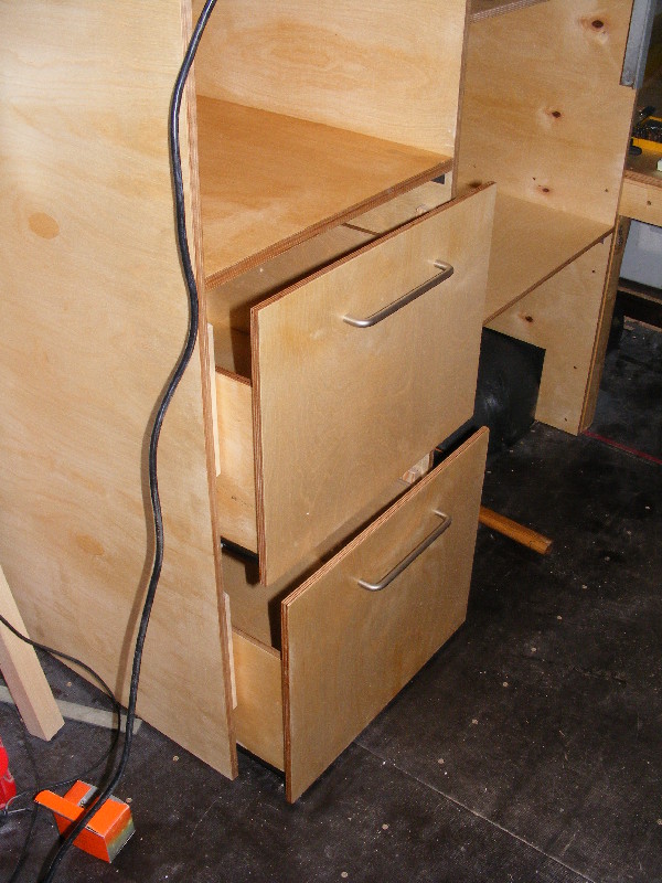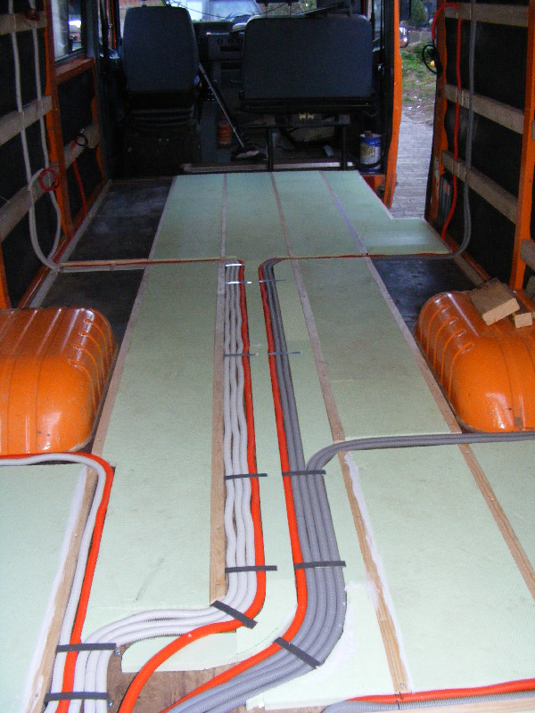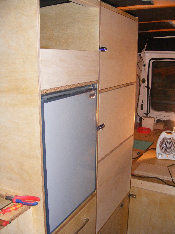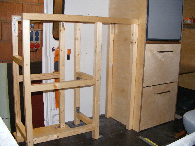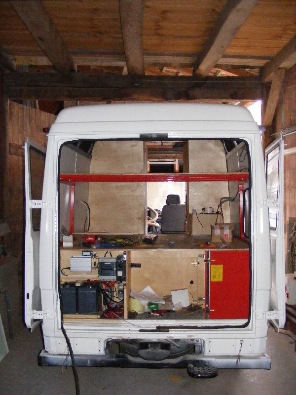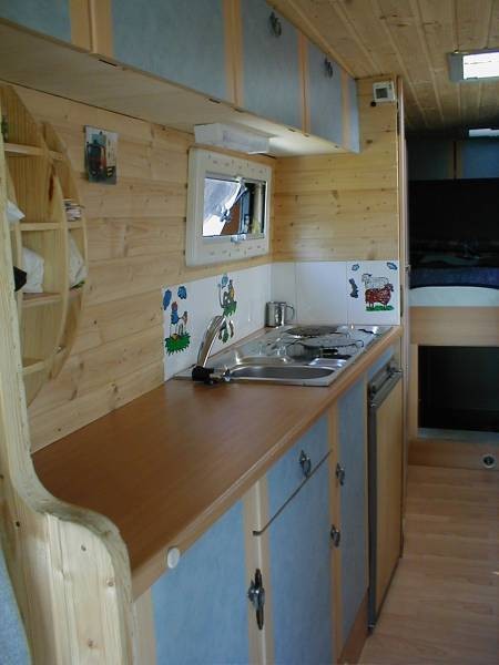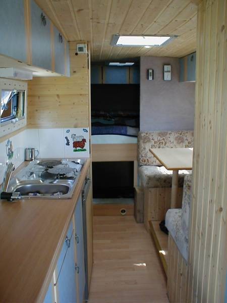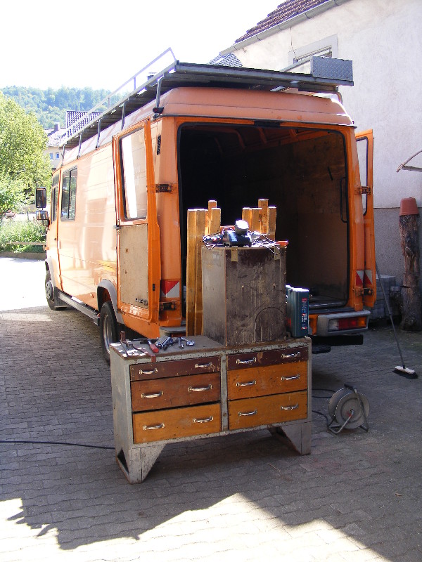 in welchem Postleitzahlbereich wohnst Du denn ? Hallo hennes, danke für die Bilder! So ein Ausbau ist zwar aufwendig, macht aber auch Spaß. Allein schon die Planung im Vorfeld, ich weiß nicht wie viele Pläne wir gezeichnet haben- und wie viele wir dann wieder verworfen haben als der Vario im Hof stand! Kurz bevor wir ihn in Erding abgeholt haben wurde ein Grundriß im Maßstab 1:1 in den Hof gemalt, verschiedenfarbige Kreide markierte die künftigen Bereiche. Und wieder wurde umgeplant... Als er dann im Hof stand und ich endgültige Maße hatte hab ich mit Klebeband am Boden markiert wo was hinkommt. Der hinten geplante raumhohe Stauraum fiel einem deutlich größen Bett zum Opfer, der Bettkasten wurde dafür etwas höher gebaut. Isolierung Seiten, Dach und Türen 38mm Armaflex, Boden 30mm Styrodur. Alle Kabel in Leerrohren, diese in 3 Farben: Trennung 12V rechts in dunkelgrau und links in hellgrau sowie orange für den 230V-Teil. Bodenplatte 18mm Siebdruckplatte, Innenverkleidung rein, Unterkonstruktion Bett aus Teilen der ehem. verbauten Regale und neuen 6x8cm Kanthölzern. Verkleidungen, Stauraumklappen, Unterteilungen, Schubkästen aus 12mm Multiplex, Liegefläche und Möbelseitenwände 15mm Multiplex. Arbeitsflächenabdeckung aus 1mm Edelstahlblech nach Maß angefertigt. 2 getrennte Wassersysteme für WC und Küche, jeweils mit Elgena KB6-Boiler. Für WC und Waschbecken im WC je ein 70 Frisch- und Grauwassertank, Toilette Thetford C200 mit Kasette. Küche je ein 30l Kanister für Frisch- und Grauwasser, an der geöffneten Schiebetür leicht entnehmbar. Die Stunden hab ich wohlweislich nicht aufgeschrieben :? Wenns weiterhin gut läuft will ich ihn spätestens Pfingsten zum ersten Mal ausfahren ... dann berichte mal bitte weiter :) noch ein paar Bilder vom Ausbau ![]() ![]() ![]() ![]() fortsetzen?