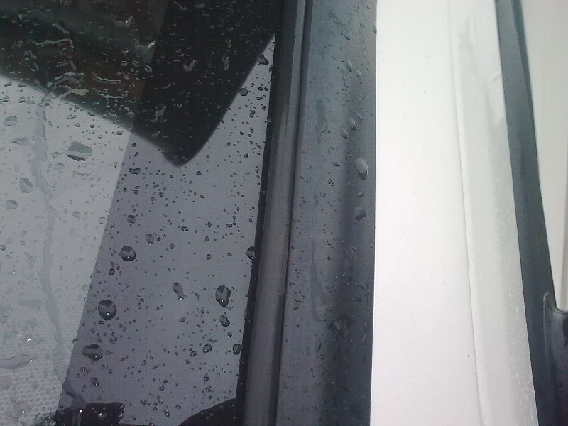 Hallo Alle miteinander, wie Ihr auf dem ersten Foto sehen könnt, seht Ihr außer einem nassen Rückspiegel nicht viel. Das ist es aber schon. Jedesmal bei Regen habe ich mich über die nicht vorhandene Sicht zum Rückspiegel geärgert. Dann kam aber die Erleuchtung. Eine kleine Dichtlippe (6mm Rundprofil mit T-förmiger Halteleiste) aus dem Fensterbau unter die Dichtung der Windschutzscheibe (mit ihrem Halteprofil) geklemmt, und schon hatte ich mir einen Spoiler zum Wasser umleiten gebaut. Beim ersten Regen konnte ich es gar nicht fassen, denn es hat auf Anhieb funktioniert. Das Wasser (egal wie viel ) wird jetzt nach oben zum Dach umgeleitet und nicht wie vordem über die Seitenscheiben.