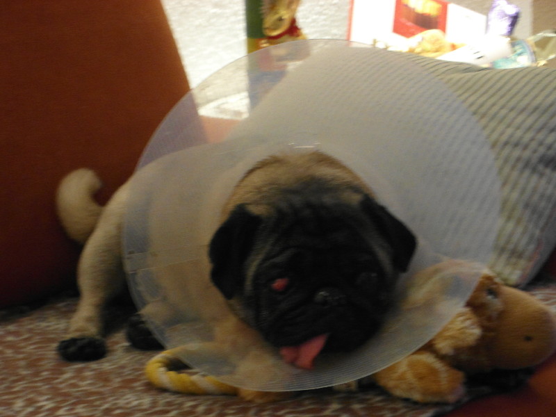 hallo sven.....ich hab nur einen von der art die ein kind so malen würde....grins der andere hat mehr ähnlichkeit mit deinem stinker... --> Link ich glaub jetzt funzt das bild ![]() Ach Gerd...der sieht ja aus wie Deissn (Thyson) , den wir in der DDR getroffen haben, letzten Sommer. Der Kragen, ...die Brille... das Biest ist geschickt. Aber im Moment hat er sich gewöhnt. Noch 8Tage.... grins.....ja die monster sind da schon sehr gut drauf ich denke ihr werdet die 8 tage gut überstehen wünsche dem kleinen mann gute besserung Heute ist Freitag, solltet ihr nicht heute noch mal zur Untersuchung? Sven, gibt es was neues? Muffin hatte sich das Auge ja Ostersonntag aufgeleckt und so waren wir Dienstag erst bei der Tierärztin und nachdem diese sah, das er nicht nur das Auge, sondern auch die Bindehautschürze aufgekriegt hatte, dann wieder in der Tierklinik. Professor Saers war aber mit der Heilung sehr zufrieden und hat nur die Fäden gezogen. Das Flap bleibt noch sieben Wochen auf dem Auge und wird dann operativ entfernt und dann hat er seine volle Sehkraft wieder. Eventuell bleibt ein Fleck. Am Dienstag müssen wir zur Kontrolle bei unserer Tierärztin. Muffin ist sehr gut drauf und kommt mit dem Halskragen auch im engen Wohnmobil gut klar. :evil: So krieg ich Edda nie dazu, einen Carver zu besorgen. :cry: Nein, alles wird gut. Wir sind sehr glücklich. wieder mal hat das Daumen drücken geholfen. Gute Besserung für deinen Muffin, Sven :ja: Danke Sven den Stand kannte ich schon, dachte nur, weil du mal geschrieben hast, Freitag seid ihr wieder zur Kontrolle dran. aber durch den Dienstag hat sich das ja verschoben. Na dann hoffen wir mal, dass es dem kleinen Wurschtel bald gut geht. Hallo Sven, wie geht es Muffin? Wir hoffen es ist alles ok bei euch. Liebe grüsse! Doreen Zweiter Tag ohne Trichter, außer wir haben ihn nicht unter Kontrolle. Das Auge sieht mit dem draufgetackertem, sich auflösendem Flap schlimm aus. An manchen Tagen ist Muffin sehr gut drauf, im Moment schläfrig und lethargisch. Er bekommt nur noch Augensalbe . Eventuell die Nachwirkungen der Drogen, er hatte aber auch eine Zahnfleischentzündung. Während unserer DDR Reise hat er beim Knochenkauen einen Eckzahn geopfert, eventuell sollten die Reste raus. Wenn er im Mai eh nochmal in Narkose muß, sollen die es checken. Aber er frisst und zeigt keine Anzeichen von Schmerz. :? So richtig zufrieden sind wir nicht, weil er sich ab und an sehr leckt und speichelt. Auch ist er zu ruhig. Bruno hat auch gerade Zahnfleischentzündung, kriegt Antibiotikum, und pennt auch den ganzen Tag. Die schlafen sich gesund. Das wird schon wieder. Armer Mops.