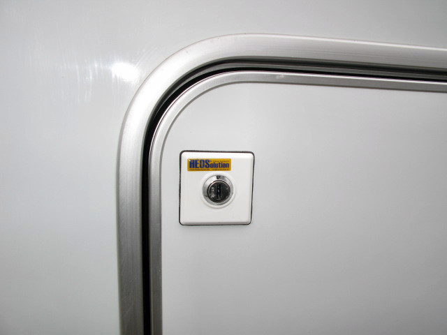 Die Aufbauschlösser werden von innen ohne Schlüssel ver-/entriegelt, die Fahrerhausschlösser kann man mit und ohne Schlüssel verriegeln.