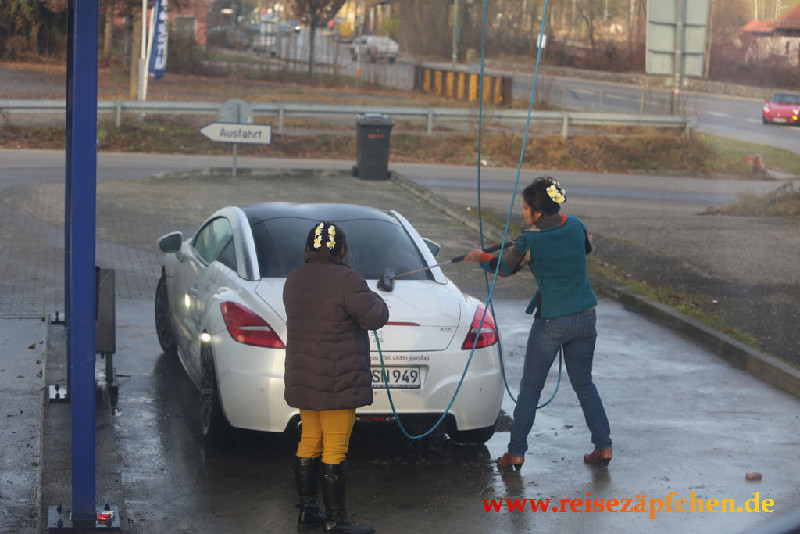 Hier waren wir mal die Druckmachenden, denn diese beiden Damen mit ihrem Riesenlaster hatten sich auf die Außen-LKW-Waschspur gepflanzt :evil: , obwohl alle anderen PKW-Spuren frei waren. Also den MAN starten und sich von hinten anpirschen. Ganz schnell hatten wir 2 Stunden für uns :D ![]() :cry: Das ist doch eigentlich ein feiner Sportwagen, der Peugeot. Und diese Hirsel verkratzen ihn mit der Waschbürste.....