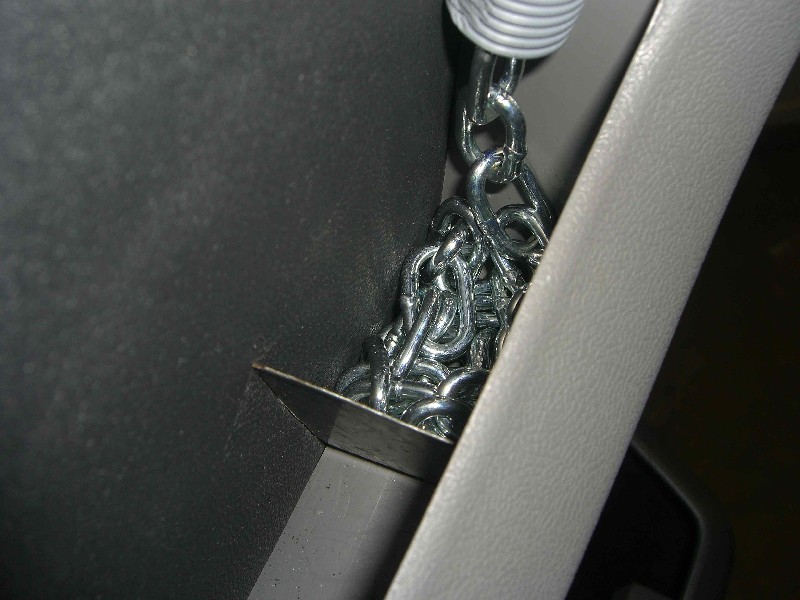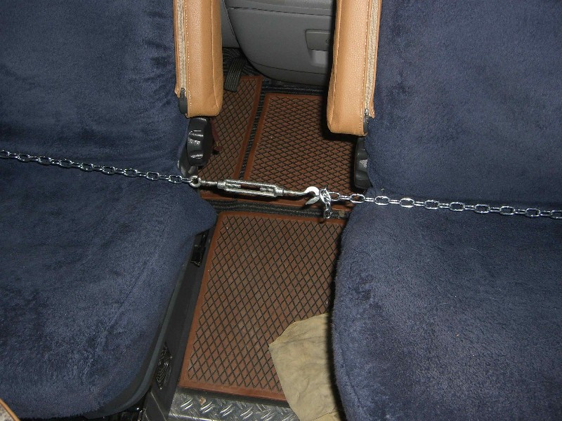 am Beifahrersitz gesichert, das geht ohne Fummelei sehr schnell. Wir verwenden die Kette in