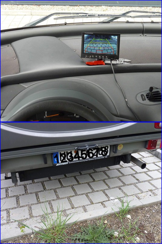 Transenfoto hab ich gemacht, Womo mach ich morgen in der Mittagspause und stell es dann ein. Es war leider schon dunkel, als ich heim kam heut. @ Mani @ sven Danke für eure Mühe. Wäre echt nett. @ mani: Die Pieper sind vermutlich an den Ecken montiert, weil sie nicht zu sehen sind?? Sorry, hat etwas gedauert. Auch bitte nicht wundern, die Transe hat sonst keine lila Gardine, aber zum fotografieren mit Schmachtfon blendete die Sonne zu stark. Und mein Wohnmobil habe ich nicht vom Stellplatz versetzt, hab ich im Moment die Zeit nicht für. Man kann aber eigentlich sehr gut erkennen, das die billige (169 Euro) Kennzeichenkamera unten auf der rechten Türhälfte montiert ein wesentlich weiteres Bild abgibt, als die mittig oben montierte "billige"(700 Euro) klassische Rückfahrkamera. Wobei das Bild auf dem 7" in Natura besser rüberkommt. Transe (Kennzeichen) ![]() Carado (klassisch) ![]() WOW, danke für den sehr interessanten Vergleich! Ich glaube dann nehm ich jetzt auch so eine Kennzeichen-Halterung mit Kamera. Welchen Winkel hat die? 170 oder 180 Grad vermute ich, ja? Hallo Sven, danke für die Bilder. Ist ja kaum zu glauben. Die Bilder der "günstigen" Nummernbildkamera entsprechen meiner Vorstellung und sind für mich in Ordnung und genügend. Kannst Du mir bitte den Hersteller nennen. :ja: Wir haben die Dinger aus der Bucht. Drei Stück. Bei einer Lieferung stimmte etwas nicht, wurde umgehend berichtigt. Ich hab dir mal die Bude direkt von meiner Rechnung rausgesucht. :wink: --> Link Ähnliche Dinger findest du ja zu Hauf in der Bucht. Es gibt für den Preis meiner Meinung nach nichts besseres. Hab mir bei A.......n 120° Kamera für Heck oben, 170° Kamera für Montage über Nummernschild und 7" Spiegelmontitor mit 2 Videoeingängen gekauft. 120° Kamera 36,93 15 m Anschlußkabel 19,95 170° Kamera mit Abstandlinien 18,99 7 " Spiegelmonitor mit 2 Videoeingängen 37,99 Gebrauchten Spiegel von Schrottplatz 5 € ![]() ![]() ![]() ![]() 120° Kamera ![]() 170° Kamera ![]() Sobald ich mir draußen nicht mehr den A.... abfriere wird das ganze in Angriff genommen. 120° Kamera kommt unter die Zusatzbremsleuchte. Leitungsverlegung durch die Rückwand und dann über den vorhandenen Kabelkanal in den Oberschränken nach vorne in den Himmel über dem Führerhaus. 170° Kamera von hinten über Nummerschild ca 16mm Bohrung so dass nuch die Linse sichtbar ist. Leitungsführung entweder komplett unter Fahrzeug und im Motorraum nach innen / oder in Heckgarage nach oben und mit Kamara1 Kabel nach vorne. Frage: mit was dichte ich Leitungsdurchführung am besten ab? Hab mir für den Spiegelmonitor auf dem Schrottplatz noch nen Spiegel für 5€ besorgt, da im Fahrzeug ja orginal keiner vorhanden war. 12 Volt möchte ich an der Innenbeleuchtung abgreifen. Hab die Teile in der warmen Stube mal mit Netzteil vorab ausprobiert und bin bis jetzt zufrieden. Sobald ich den Einbau bewerkstellige werde ich es hier mit Fotos dokumentieren haballes, jetzt muss ich nochmal nachfragen... du hast das Kameraset "ohne Fischaugeneffekt" verlinkt. Hat du das wirklich? Weil auf deinem Testbild ist schon recht deutlich die Verzerrung zu erkennen...?!? Hmm....also die Bude war es auf jeden Fall, hab die RG. bei meiner Buchhalterin eingesehen. Die auf dem Bild kam meiner am Nächsten. Auf den Beispielbildern des Produktes fehlen mir aber die rot/gelb/grünen Marker. Und ich hab 169 Euronen pro Gerät bezahlt. Im Ibääh tauchen immer nur ähnliche Produkte auf. Vielleicht bei Interesse einfach mal die Fa. kontaktieren. Aber Moment, ich glaub ich bin fündig....das hier war sie. :wink: Link zum eBay Artikel (Der Link ist nicht für die Ewigkeit!) Hallo zusammen, habe auch den Spiegelmonitor mit den 2 Eingängen aus der gleichen Bude (Car***ien). Eine normale Kamera kam bei uns wegen dem Fahrradträger nicht in Frage, da hätten wir nix gesehen. Wir sind sehr zufrieden mit der Kamera. :zustimm: Auch die Montage war einfach (nachdem ich den Weg für das Kabel unter das Fahrzeug gefunden hatte). Auch wenn ich nix an den Rückfahrschalter angeschlossen habe, da geht der Monitor beim Rangieren immerzu an und aus. Bei der kurzen Signalverzögerung kann das nerven. Die Kamera zeigt den Bereich hinter dem Womo wirklich gut, mit einer Matrix als Orientierung für den Abstand. Der Weitwinkel der Nummernschildkamera reicht vollkommen aus, geht fast bis zu den Seitenkanten (10cm fehlen). Markus Danke haballes! Dann schau ich mal, welche Solo-Kameras die im Shop haben. Ich will das Bild über mein Pioneer AppRadio laufen lassen, damit ich nicht noch einen Monitor brauche... @ haballes, danke nochmal für Deine Mühe. Die im 2. Link gezeigte Kamera ist genau die, die ich auch ausgesucht hatte. Da werde ich auch zuschlagen, zumal der Preis für das Komplettpaket m. E. super ist. Deine Bilder haben sehr zur Entscheidungsfindung beigetragen, weil man nicht die Katze im Sack kaufen muss, sondern tatsächlich das (in diesem Fall erfreuliche) Ergebnis sieht. Viele Kurt
