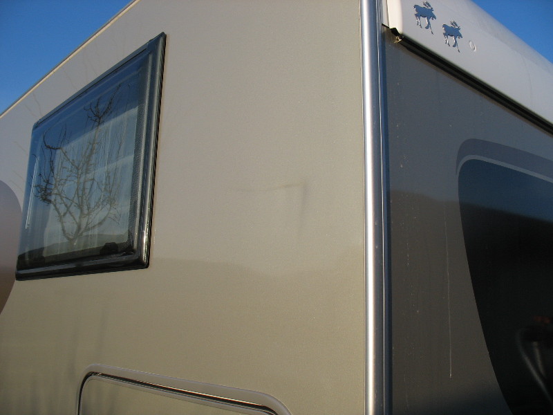 Wie wahr :? Hab da auch so 'ne kleine Beule, die man wirklich kaum sieht....aber wenn man es selber weiss :( Bei dem Fahrzeugalter würd ichs machen lassen. War das Deine erste Beule? Komm ich zeig Dir mal mit was ich mich rumärgern darf. Und das ist nur ein Kratzer, die richtig ernsten lasse ich mal weg. Wenn Du dann noch über dein Missgeschick verstimmt bist, dann lass es hält machen. Wie sagt man so schön, mach, aber mach. Ansonsten ist meine Meinung ähnlich der von Sven. Hier der Kratzer. ![]() Ich hatte einen ähnlichen Schaden an meinem vorigen Mobil. Mein Händler hat mir vorgeschlagen ein Lueftungsgitter vom Kuehlschrank oder ähnliches rüberzukleben und so haben wir es gemacht. Wer es nicht weiß denkt das muss so sein......Wenn das fachgerecht repariert werden soll musste die ganze Seite lackiert werden. Ich muss mich mal outen: Ich liebe die Beiträge von Sven - herrlich schön beschrieben und in der Sache trifft er genau den Punkt. Und was ich noch zu dem Thema beitragen kann? Mein Womo kam ziemlich genau vor einem Jahr neu zu mir und etwa genau vier Monate später hatten wir unerfreulichen Kontakt mit der Fahrbahnbegrenzung in der Altstadt von Carcassonne. Was soll ich sagen? Ganz ehrlich, dieser Tag war echt für mich gelaufen, aber es hat sich etwas gewandelt in mir. Vor diesem Ereignis hat mich jeder Kontakt mit einem Zweigchen erbeben lassen. Jetzt fahre ich viel befreiter und kann das Reisen im Wohnmobil noch mehr genießen. Daher mein Aufruf an alle frisch gebackenen Besitzer: Fahrt so schnell wie möglich die erste (kleine, nicht so offensichtliche) Ecke in Eure Kiste! :wink: Tag Das Problem hierbei ist nicht das Lackieren, sondern die Vertiefung im Alublech. Dieses sandwichverklebte Alu wird bei Kalt/Warm Bewegungen einen aufgetragenen Spachtel immer reißen oder brechen lassen. Rausziehen kann man die Delle nicht, da es ja trotz der Vertiefung mit dem Innenleben verklebt ist. Undichtheit ist Quatsch, ist ja kein Loch drin. Ein gute Reparatur wird also nur eine Neuverblechung sein, die kostet aber reichlich. Überleg Dir in Ruhe ein Anbringen von Lüftungsgitter, Bullauge, Steckdose oder Ähnlichem. Man braucht hierbei ja innen nichts anschließen. Aufkleber ist nix, der überbrückt die Delle nicht. Gut wäre ein Schriftzug aus dickerem Kunststoff oder Alu. Schau einfach mal durch einen Zubehörshop, da findest schon was. Kurt bedanke mich für deine ( eure) Gedanken, mit dem brechenden Spachtel habe ich nicht beachtet, aber deine Erklärung leuchtet mir ein.Ich werde mir die Sache noch mal durch den Kopf gehen lassen. Ich überlege schon den ganzen Tag was ich dort dran schmieden könnte, irgendwas Blindes will ich nicht, find ich dann bissl albern, dann steh ich lieber zur Beule, wenn dann sollte es schon was sinniges sein, aber was? Schaun wir mal, ich geb Bescheid |