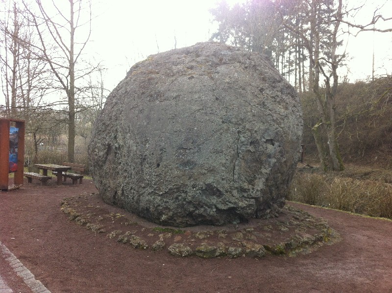 Nach der Theorie der Wissenschaft handelt es sich um einen Gesteinsbrocken, der die Kraterwand herunterrollte und dabei Lava an sich band, ähnlich einem Schneeball. Der Brocken landete wieder im Schlot, wurde erneut herausgespieen, rollte wieder die Kraterwand herab, band weitere Lava an sich, fiel erneut in den Schlot wurde wieder ausgespieen etc. Irgendwann einmal wurde er dann endgültig ausgespuckt.