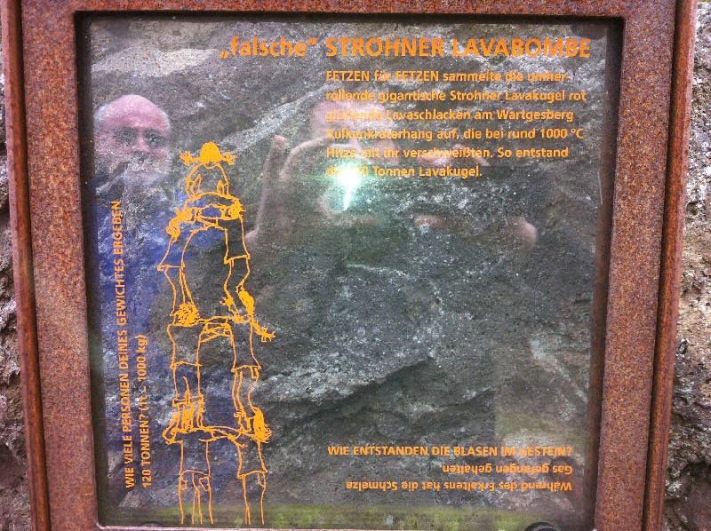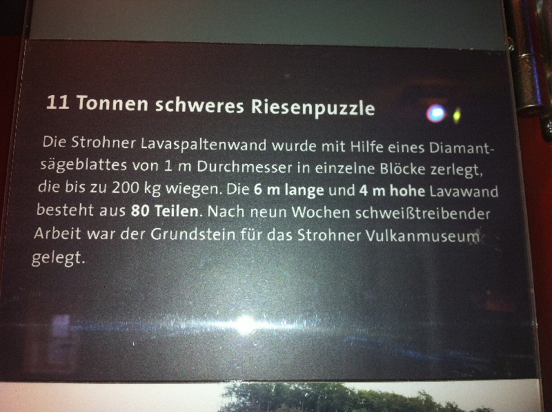 Für die Kinder weit interessanter ist die "Riechstation" eine Kammer in der es die beim Vulkan vorkommenden Gase (einen Teil davon) zu riechen gibt. Man drückt einen Knopf und aus einer Düse strömt das Gas: Co2, Wasserdampf, Schwefeldioxid und Schwefelwasserstoff. Die Kinder sind begeistert. Die Kassendame des Museums empfiehlt eine kleine Maar- und Vulkanwanderung zur Lavabombe.