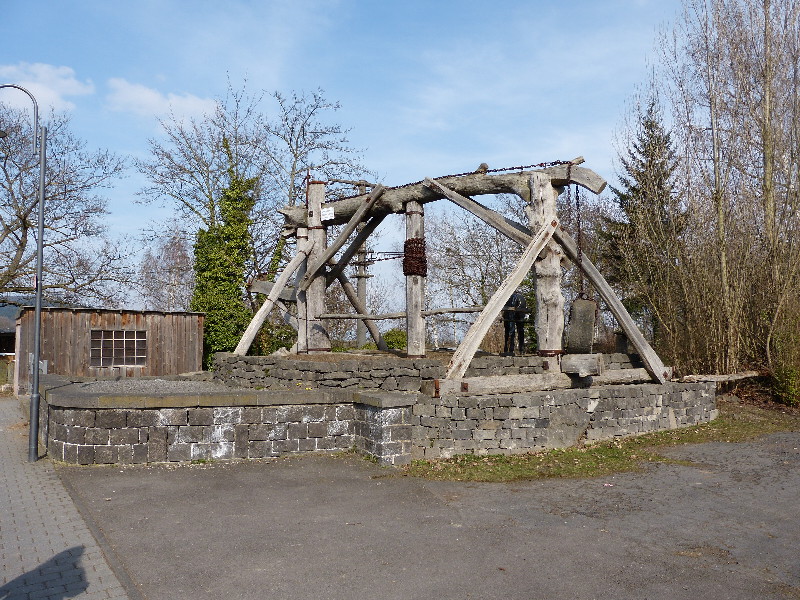 Hier erfahren wir wie schon die alten Römer den Tuffstein im Bergbau abgebaut haben als begehrten Baustoff. Vor dem Museum stehen einige Fördergeräte jüngeren Baujahres (ca. 1955- 1970).