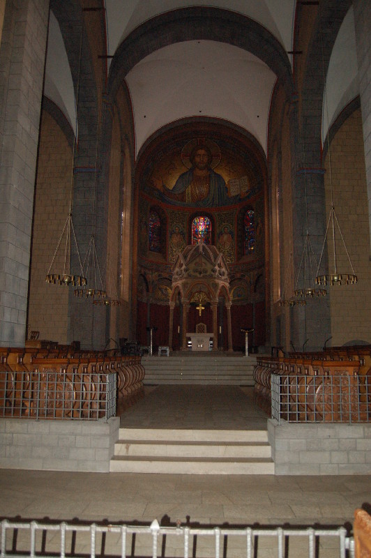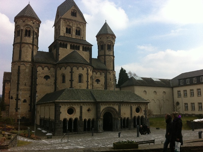 Eigentlich wollten wir am Mittwochabend starten, jedoch hatten wir soviel Arbeit, dass an ein Packen und Vorbereiten des Womos am Nachmittag nicht zu denken war. Bis 17.00 Uhr sind wir noch voll am arbeiten, danach lade ich die Fahrräder und fülle den Wassertank. Inzwischen ist es 19 Uhr geworden. Wir nehmen nun doch noch einen beruflichen Termin wahr, den wir eigentlich abgesagt hatten und beschließen erst am Donnerstag loszufahren. Nach dem Frühstück starten wir, in der Mittagszeit erreichen wir unser Ziel, das Kloster Maria Laach. Wir parken auf dem kostenpflichtigen Parkplatz ( 4 Euro Tagesgebühr) und werden vom beflissenen Parkwächter mehrfach eindringlichst darauf hingewiesen und ermahnt ja nicht über Nacht zu bleiben.