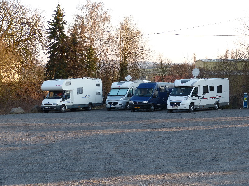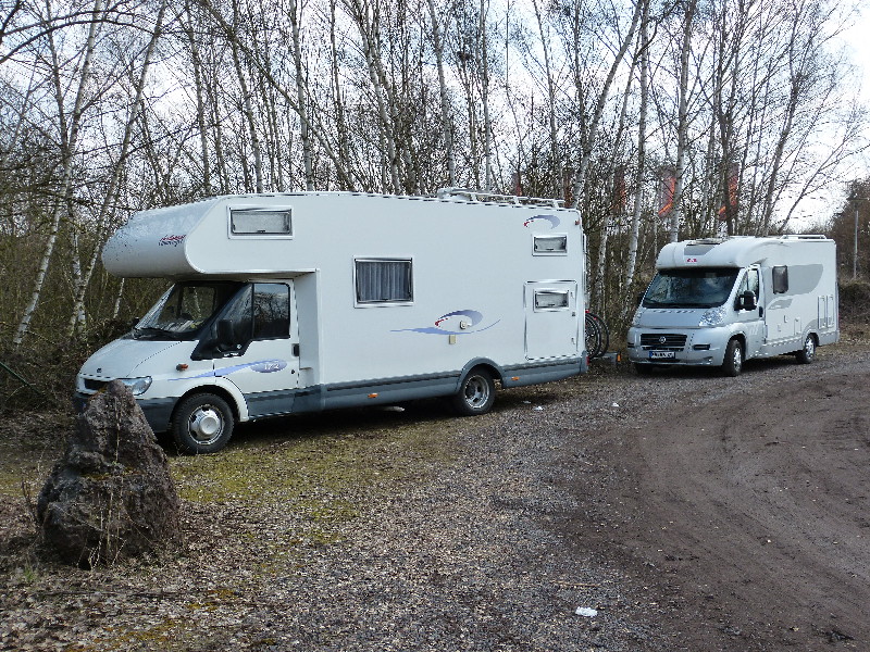 Danach fahren wir weiter bis nach Gillenfeld. Unterwegs beginnt es heftig zu schneien (es ist der 28.3.13). Gegen 17.00 Uhr erreichen wir den offiziellen und kostenfreien Womostellplatz in Gillenfeld, der jedoch außer einer Parkfläche und einem Bolzplatz nichts bietet. Egal, noch sind die Batterien voll und wir brauchen auch keine VE. Die Kinder greifen sich ihren Ball und spielen auf dem Bolzplatz Fußball.