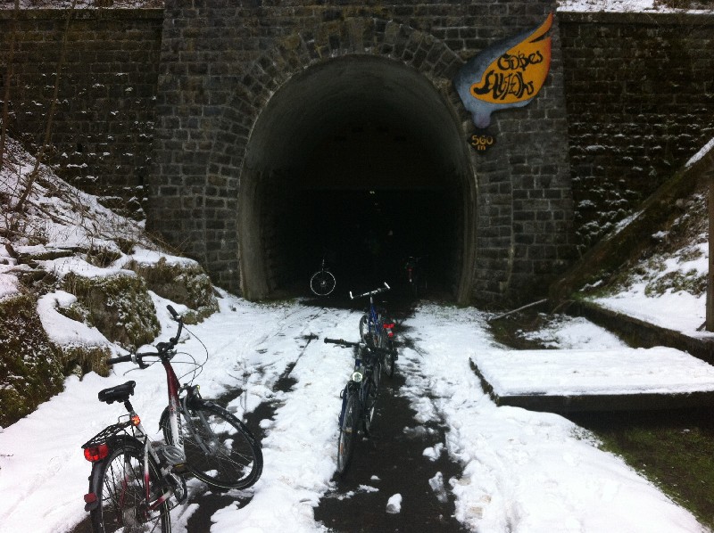 Danach fahren wir zurück nach Gillenfeld, wir wollen den Kinderradweg in Richtung Daun fahren, inzwischen schneit es nicht mehr, ist aber saukalt. Wir essen zu Mittag und verkleiden uns mit Mützen Schals und Handschuhen. Man könnte meinen, wir gehen zum Skifahren und nicht zum Radfahren!