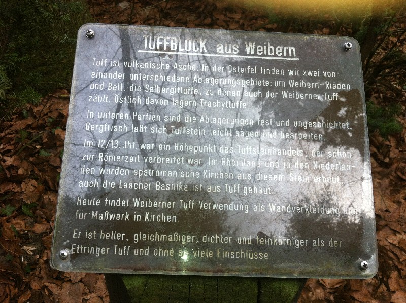 Nach den Römern folgte eine lange Pause bis im Mittelalter erneut Tuffstein abgebaut wurde. In den 1950 wurden dann der Bimsstein, der in einer mehrere Meter dicken Schicht über dem Tuffstein lag, abgebaut. Damit wurde quasi der Tagebau am Tuffstein möglich. Durch die schweren Maschinen, die den Bims abbauten, brachen viele der Tuffsteingrubengänge ein und der Bergbau der Römer kam zum Vorschein.