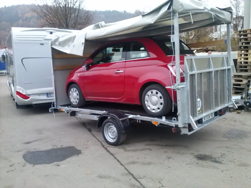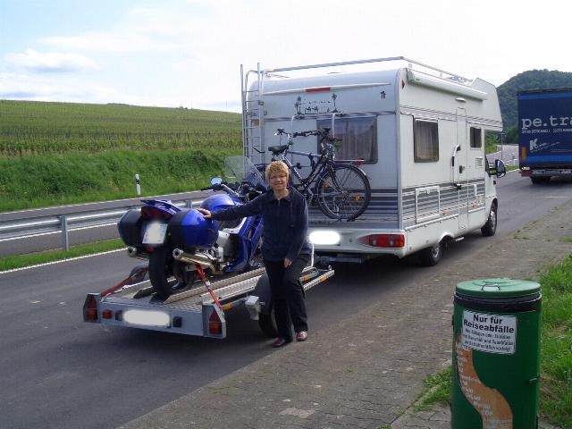 Gratuliere, ein schönes Gespann. Unser Trailer ist zur Zeit leider leer, da unser PKW seit fast 5 Wochen in der Werkstatt steht und wir auf ein neues Getriebe warten. Da haben die Italiener (Fiat) die Finger mit im Spiel.