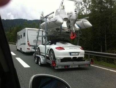 An Acki, schöner Schnappschuss. In den USA wäre das einfacher, dort hat man einfach 2 Hänger hinter dem Mobil.