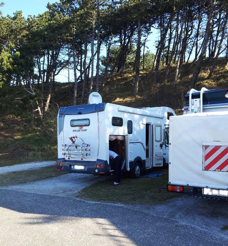 Ihr erfahrenen Wohnmobilisten fragt euch sicherlich, warum zum Teufel fahren die ständig die CPs an? Ich mich auch! Aber das riesen Problem von uns ist, wir haben keine Fahrräder mit, ein echtes Problem bei der Lebensmittelbeschaffung und es sind noch Feiertage, die Geschäfte haben zu. Sowas passiert mir auch nicht mehr. Egal, morgen suchen wir die Nordsee und werden sie sicher auch finden, obwohl Mann und Kinder behaupten, die ist mind. 15 Kilometer weg .*vogel