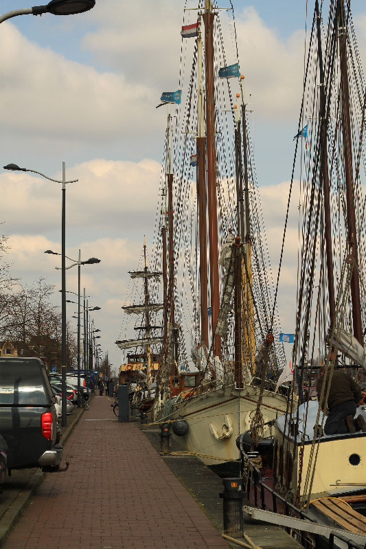 Am nächsten Morgen gar schrecklich, Schneegrisel und tote Hose am Platz. Kurzentschlossen haben wir uns dann auf den Weg nach Nord-Ost Richtung Kampen gemacht. Hansestadt! Action! Vermutlich. Leider mussten wir feststellen, dass unser Kühlschrank nur Landstrom oder Fahrwasser mag. Also Stellplätze ohne Stromanbindung war leider nicht. Also auch kein Parken in Kampen sondern wir mussten raus zum Jachthafen. Der Platz wäre sicher nett gewesen, wenn irgendwas da wäre. Erst mal brauchten wir ne geschlagene halbe Stunde bis jemand kam. Dann war der Platz total sandig (alle anderen standen auf Wiese) und die Duschräume waren sch….kalt. Brötchenservice in der Wallachei war auch nicht, haben wir also unsere alten Stullen herausgekramt.