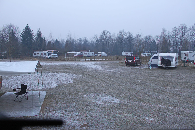 Blick aus dem Fenster :roll: ja klar alles gefroren. Hatte ich es nicht gestern prophezeit? Jetzt ist der Abwassertank sicher gefroren und da waren doch ein paar Liter drin. Das gilt es zu prüfen.