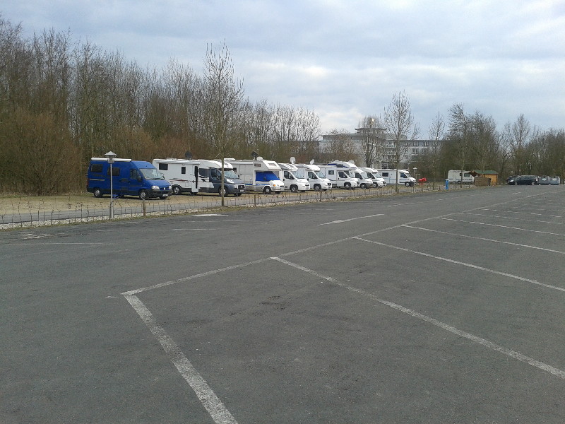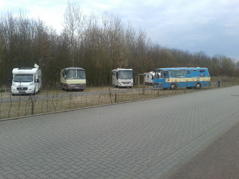 Freitag war der Tag noch grau und kalt, Edda saß mit langem Gesicht vor dem ausgehenden Pelletofen und hatte sichtbar überhaupt keinen Bock. So fuhren wir etwa ein Stündchen zu dem bestens ausgeschilderten Platz in der Rheinaue, einem Naherholungsgebiet von Wesel. Es standen etwa 10 Mobile dort und wir fuhren vor eine Kette. :eek: So fuhren wir den Platz entlang und landeten an der anderen Seite wieder vor einer Kette. :eek: Der riesige Parkplatz vor den Stellplätzen erlaubte Wohnmobilen nur von 8-20 Uhr das Parken und die vordere Reihe war für 12 Mobile als gebührenpflichtiger Ausweichplatz ausgewiesen.