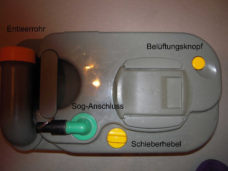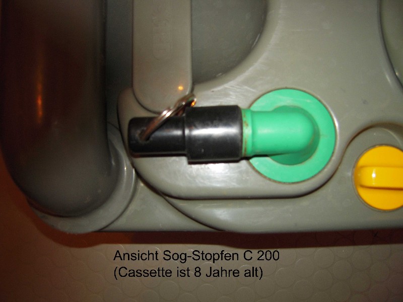 Sei mir nicht böse, aber warum muss man zum Entleeren den Schieber öffnen? Wenn ich meine 1. oder 2. Cassette entleere, dann schraub ich nur den gelben Verschluss meiner C 200 Cassette auf. Damit dann auch wirklich ein normales Entleeren möglich ist, noch zeitgleich auf das Belüftungsventil, von oben betrachtet rechts oben auf der Ansicht des Cassette. Damit wird ein Unterdruck in der Cassette verhindert. Ich hab noch nie erlebt, dass ich diese Verschlussschraube am Ausguss nicht aufbekam. Wenn eine solche Situation je auf mich zukäme, würde ich einfach als erstes auf diesen Belüftungsknopf drücken. Ich kenn Deine Toilettenversion nicht, bei der C200 funktioniert das aber.