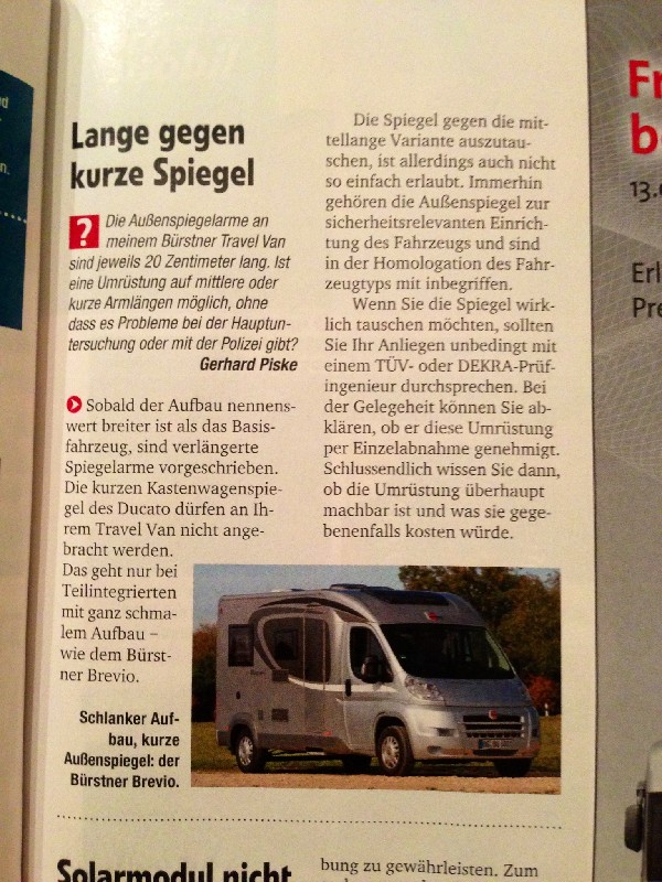 da ich einen neuen Außenspiegel auf der Fahrerseite brauche und es 3 verschiedene Größen des Armes gibt stellt sich mir die Frage ob es Sinn machen würde statt des ganz langen Armes der serienmäßig verbaut ist den mittleren zu nehmen, die Sicht wäre so ziemlich die gleiche hab mir das heute mal bildlich vorgestellt mit Sitzen im Womo , der Vorteil wäre, dass Womo würde schmaler werden.