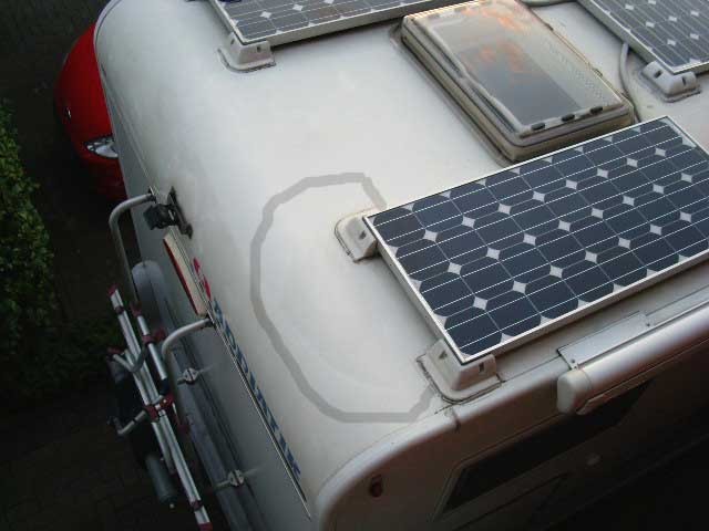 aufmerksam, dass das Dach Flecken hat. Siehe Bild - links vom Solar - an der hinteren Rundung, auf der gesamten Dach-