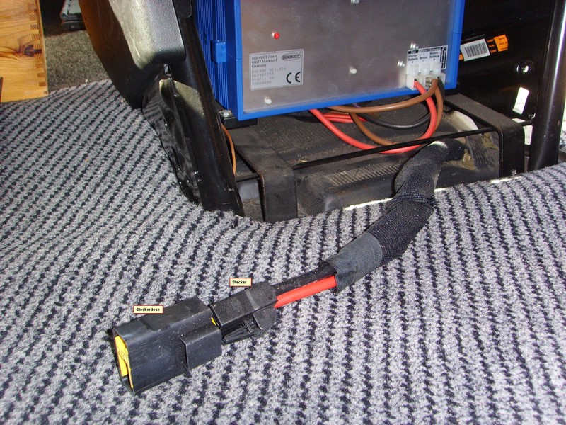 Kabel aus Boden hinten unter Beifahrersitz mit Stecker und Steckerdose