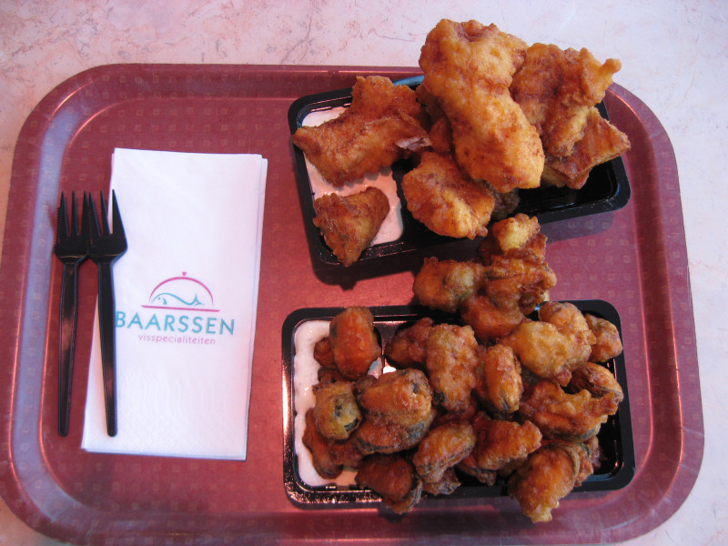 Da es auf Mittag zu geht, stärken wir uns in einem Fischlokal am Hafen mit Kibbeling und Mosselen. Um die Ecke haben wir in einer großen Halle auch ein großes Deko-Geschäft gefunden. Jetzt wissen wir, wo die ganzen Dekorationen in den Häusern herkommen.