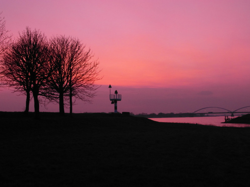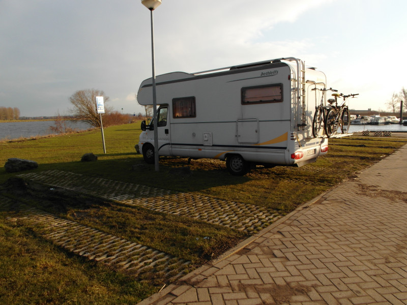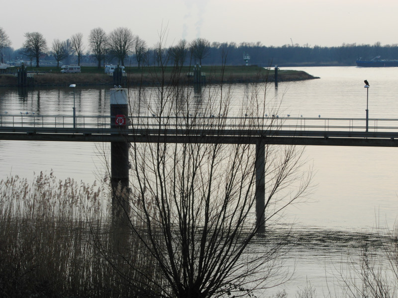 An dem Stellplatz ist es ruhig. Wir sind von der Maas und dem Hafen eingerahmt. Am Abend laufen noch einige Frachtkähne in den Hafen ein, von uns nur durch die wandernden Lichter wahrgenommen.