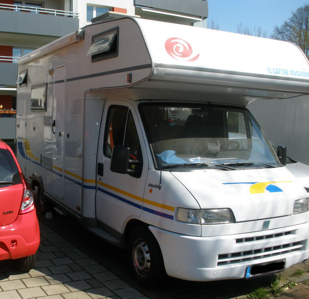 Auch sonst war telefonisch wenig an brauchbaren Informationen herauszubekommen. Die Verkäufer sind ein älteres Ehepaar, die als Erstbesitzer mit dem WoMo die letzten 13 Jahre quer durch Europa (und sogar Nordafrika) gegondelt sind. Gestern haben wir den Wagen persönlich in Augenschein genommen. Es ist ein Fiat 2.8 id.TD, Eura Mobil Activa Sport 635VB (EZ 04/2000).