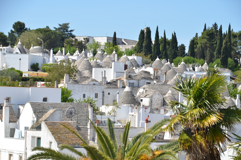 Nach dem Mittagessen geht die Fahrt wieder entlang der Küste weiter, an Bari vorbei nach Alberobello. In dieser Gegend sind die sogenannten Trulli-Häuser (Einzahl: Trullo) wegen ihrer eigenwilligen Bauweise berühmt. Deren Errichtung begann im 17. Jhdt. um sich Steuern zu sparen. Für uns eine ausgezeichnete Gelegenheit, um uns die Füße zu vertreten, eine Kaffeepause einzulegen und die netten Häuser zu besichtigen.