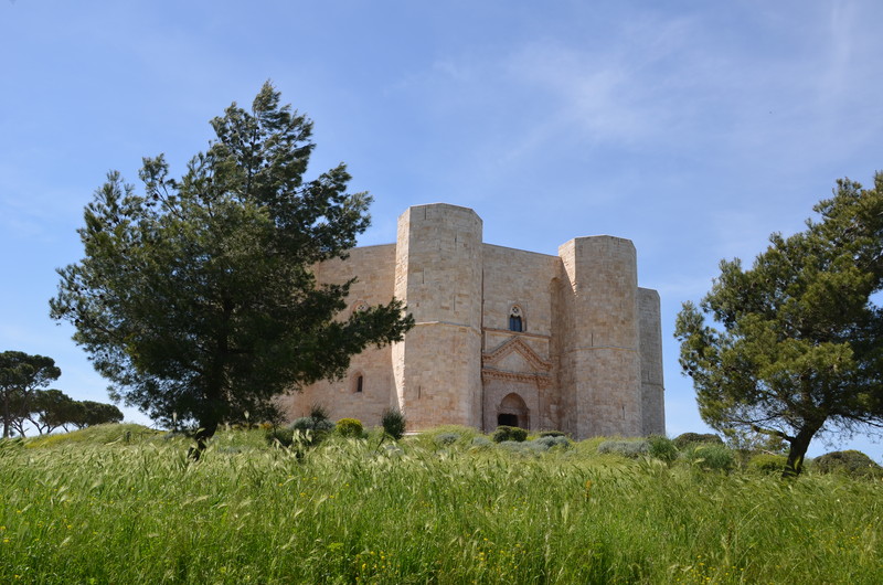 Als erstes Zwischenziel steht Castel del Monte auf dem Programm: Wir parken unser Wohnmobil auf einer großen Wiese unterhalb des Hügels und zahlen dafür € 5,--. Dafür werden wir von einer netten Dame mit dem Shuttlebus zum Castel von Friedrich II. gefahren, dass ja eigentlich gar keine Burg sein soll, aber so genau weiß das anscheinend niemand ...