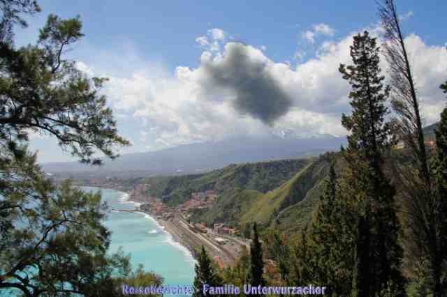 Taormina soll eine der schönsten sizilianischen Städte sein, die schon zahlreiche Persönlichkeiten - unter ihnen Wolfgang Johann von Goethe, Kaiserin Elisabeth von Österreich, Jim Kerr von Simple Minds, Rupert, ein kleiner Schuhmacher aus Kuchl, usw. - besucht haben. Auf jeden Fall ist sie mit Abstand, die bei Touristen beliebteste Stadt Siziliens. Und das aus gutem Grund: Die Lage auf einem Felsen hoch über der Bucht von Naxos und dem Meer ist schon mal sehr beeindruckend, die Küste vor Taormina mit der kleinen Isola Bella, was soviel heißt wie schöne Insel, ist wie der Name eben sagt. Die Innenstadt Taorminas, mit ihren engen Gassen macht auf uns einen lieblichen Eindruck, mit sehenswerten Kirchen und vielen Plätzen, die einen herrlichen Ausblick auf das Mittelmeer und den Etna bieten (wenn er nicht gerade in den Wolken versinkt ...).