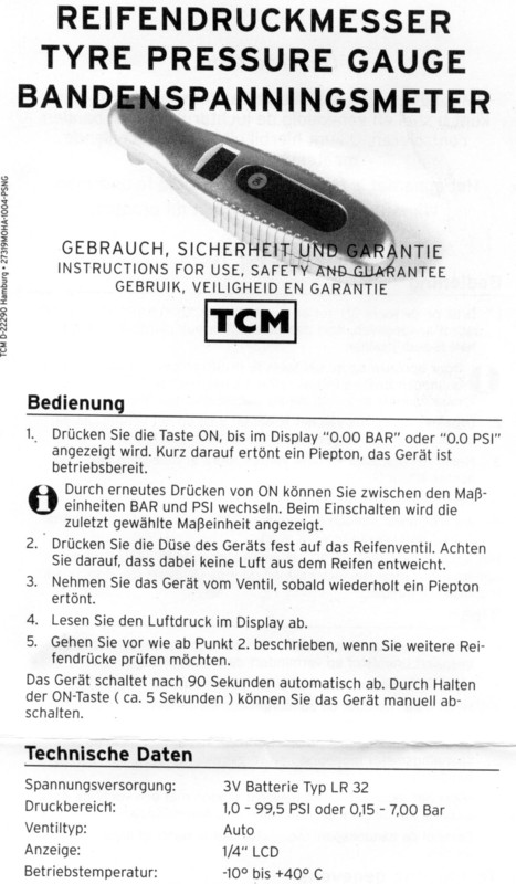 Ich habe die Erfahrung gemacht, die mobilen Geräte an Tankstellen bringen den Druck nicht für WoMo-Reifen. Die stationären Geräte, mit Schlauch, sind bei uns überdacht angebracht. Durchfahrtshöhe 3m - unser WoMo ist 3,12m hoch. Wir haben auch einen mobilen Baumarktkompressor (10 EUR) der angeblich bis 12bar bringen soll - aber ziemlich schnell sehr heiß wird. Die Nächste Möglichkeit wäre jetzt ein größeres Gerät mit Druckbehälter - den hab ich aber unterwegs nicht dabei. Habt Ihr für unterwegs spezielle Kompessoren - oder verlaßt Ihr euch auf Tankstellen ? vielen Dank für Eure Beiträge Christian Warum fährst Du nicht LKW-Tanken an .. :nixweiss: Die haben die nötige Durchfahrtshöhe und die großen Kompressoren (und meist auch noch billigeren Diesel 8) ), das geht doch völlig problemlos ... Geprüft wird hiermit. ![]() Fehlt Luft: siehe Lancelot. Ich hab immer 5 bar in meinen Puschen und mache die auch mit den kleinen mobilen Geräten rein, nur dauerts da halt ein bißchen und du musst - wenn viel fehlt - halt x-mal laufen... Am besten sind die Säulen mit nem langen Schlauch an denen man einmal den Druck einstellt, dann jedes Rad einfach anstöpselt und automatisch der eingestellte Wert abgeglichen und ggfs. was nachgeblasen wird. Die sind mir am liebsten, gibt es mittlerweile teilweise auch an AB-Raststätten.. Ciao Didier Ich benutze so etwas. Ich kann damit nicht nur prüfen, sondern ich kann auch gleich aufpumpen. Amazon Link Ich hab mir beim Schindelar in München für ca 35 Euro einen etwas besseren Kompressor mit Manometer gekauft. Der hat mir bereits 2 mal bei Plattfüßen geholfen. In Rumänien war es ein Hufnagel, in Frankreich eine Schraube. Dank Kompressor konnte ich mir den Reifenwechsel ersparen. Einfach wieder auf 5,5 Bar aufgepumpt, da hats bis zur Werkstatt gereicht. Das Manometer des Kompressors hab ich einmal "geeicht", also mit mehreren anderen verglichen. Ein Kompressor gehöhrt zur Grundausrüstung des Womos (genauso wie das Digitalmultimeter). Für10 Euro gibts aber kaum etwas Gescheites. Mit dem Kompressor werden auch die Fahrräder aufgepumpt. Ich hab den hier: Amazon Link Der braucht 15 A!! haarig wird es, wenn man >5,5bar benötigt. Die Automaten die ich gefunden habe, lieferten jedenfalls nicht mehr, auch nicht auf Autobahnrastplätzen. :cry: