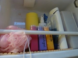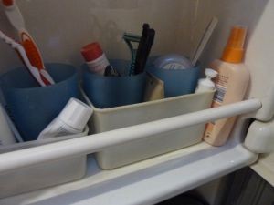 bei unserem Kasten ist im Bad ein Schrank, in dem wir alles mögliche Zubehör verstauen: Zahnbürsten, Duschgel, Haarwaschmittel, .....
