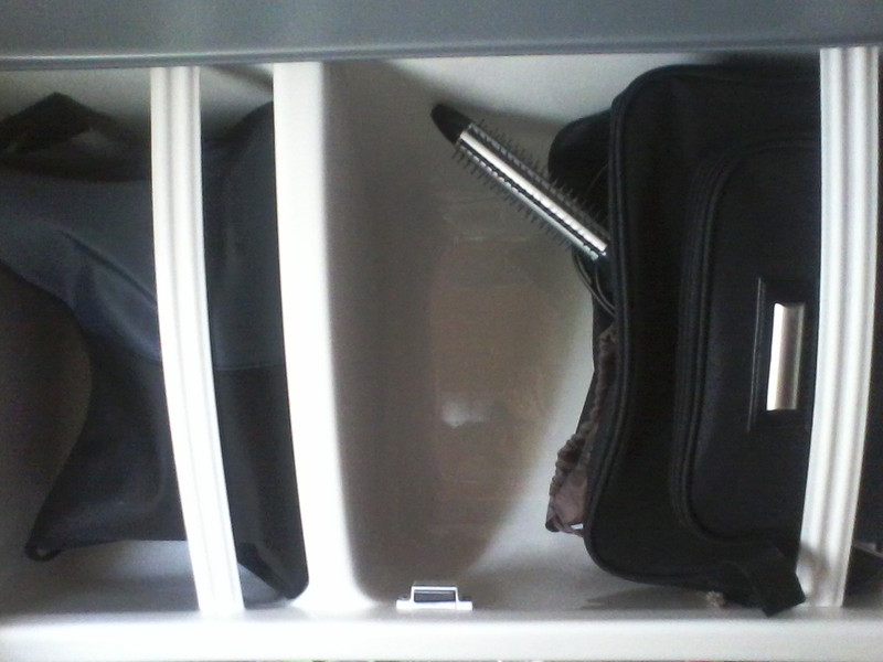 Das ganze Zeug poltert natürlich während der Fahr komplett im Schrank durcheinander und neigt auch dazu beim ersten Öffnen des Schrankes einem vor die Füsse auf den Boden zu fallen. Mir fehlt noch die zündende Idee, wie man das Problem in den Griff bekommen und dabei eine Lösung hat, die auch noch vernünftig aussieht.