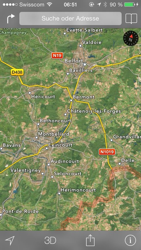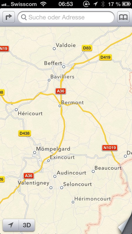 Sprachgebiet, da könnte der Kartenlieferant von Apple eigentlich mal langsam die franz. Namen