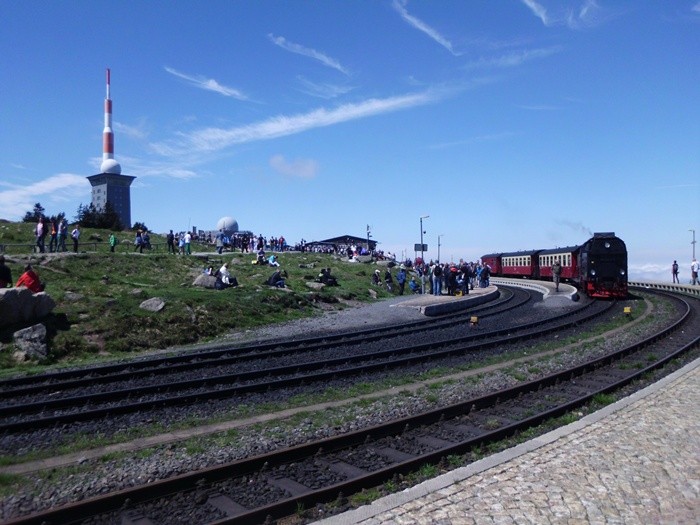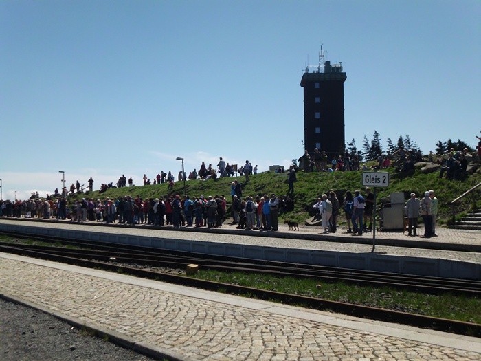 Ihr seht, daß das Wetter leider nicht so toll war. Wenn man über die Kuppel des Gebäudes im Hintergrund schaut, sieht man normalerweise bei guter Sicht den Brocken. Ich sah hingegen nur Wolken und es war ungemütlich windig.