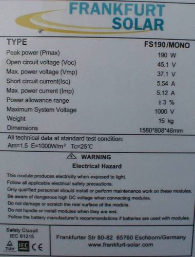 ... es war bei uns zwar 27 ° aber die Sonne war nicht zu sehen :? mit dem " alten Regler " war ich immer nur im Winter unterwegs, habe erst im Dezember bis April einen richtigen Vergleich ob der MPPT wirklich mehr bringt. ich habe dieses Modul ![]() Hennes, 7,8A ohne Sonne bei nem 190er, solche Module will ich auch. :wink: WK ... wie gesagt, bei voller Sonne kommt vom Solar 47 Volt ! mit Multimeter gemessen ! ob das genau anzeigt ?