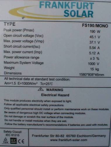 uwet hat geschrieben:Ein Modul für Vmp=24V mit einer Leerlaufspannung von Voc=48V gibt es nicht, es wir ein 36V-Modul(Vmp) sein.