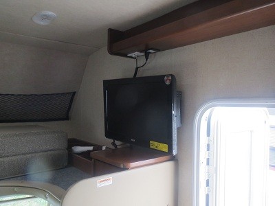 Wenn man rein kommt ein toller 26'' Bildschirm mit DVD. Leicht erklärt, auf dem Dach eine Antenne mit Dvbt. Gott sei Dank legen wir keinen großen Wert auf TV.