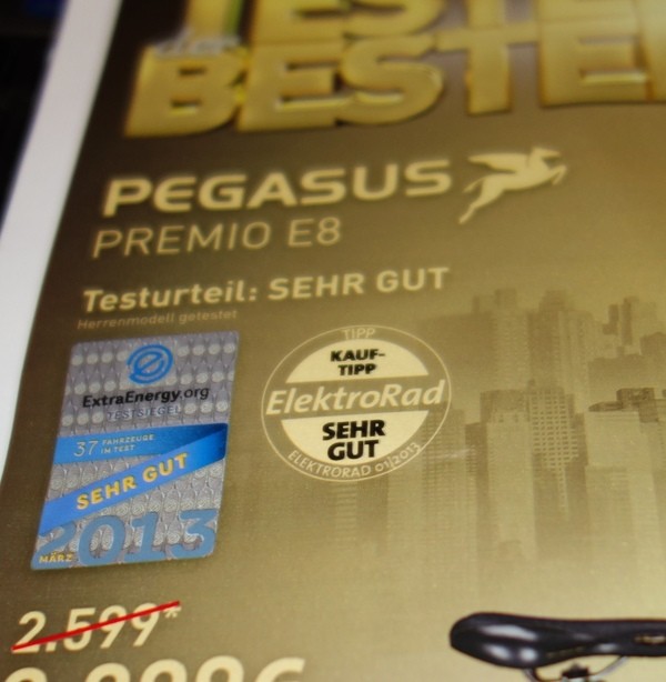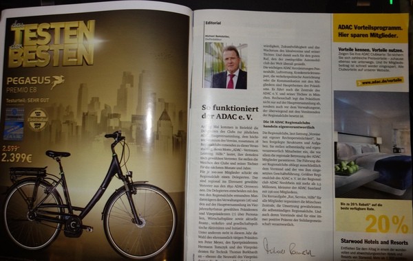 Laut Handelsblatt wurden bei den Modellen mit Bruch die Tests bis zu 4 mal wiederholt, was schon seriös ist und eine klare Tendenz unter DEN Testbedingungen zeigt. Allerdings hätte man dies auch bei denen ohne Bruch machen müssen, denn vielleicht war da ein besonders gutes in der Qualitätsstreuung. Aber selbst der ADAC schreibt: "Weder der Name des Herstellers noch der Preis sind verlässliche Indikatoren für die Qualität eines Elektro-Fahrrads. Verbraucher können sich nur durch umfangreiche Produkttests informieren, um sich ein eigenes Urteil zu bilden." Da gebe ich dem ADAC recht. Wobei hier schon einige "Markenlober" sich geäußert haben. Ein Test ist eben nur ein Test. Erst mehrere Tests und umfangreiche Information lässt ein klares Bild erscheinen. Nicht anderes sage ich ja die ganze Zeit und werde deshalb kritisiert. Aber damit kann ich leben. :P "Nach Ansicht des ADAC ist es nicht akzeptabel, dass die Zukunft der Elektromobilität durch mechanische, sicherheitsrelevante Unzulänglichkeiten bei Pedelecs – wie sie im aktuellen Test vorliegen – gefährdet wird. Der Club fordert die Hersteller daher auf, umgehend dafür zu sorgen, dass Rahmen, Lenker und Bremsanlage der Elektroräder den Anforderungen Stand halten und ein Höchstmaß an Sicherheit für Nutzer sowie andere Verkehrsteilnehmer bieten." Auch hier gebe ich dem ADAC recht. Meine Kritik bezog sich nur darauf einen Test als das Maß aller Dinge darzustellen. Noch so ein Witz: Pegasus Premio E8 im aktuellen Test: Schlechte Note 4,3. Seite 1 der aktuellen ADAC Motorwelt: Werbung genau dieses Modells. ![]() Besonders lustig: ![]() Ja watt denn nun, gut oder schlecht? :?