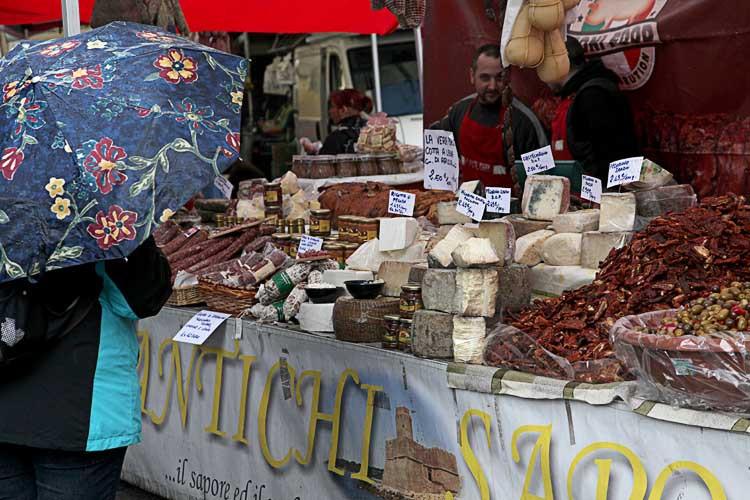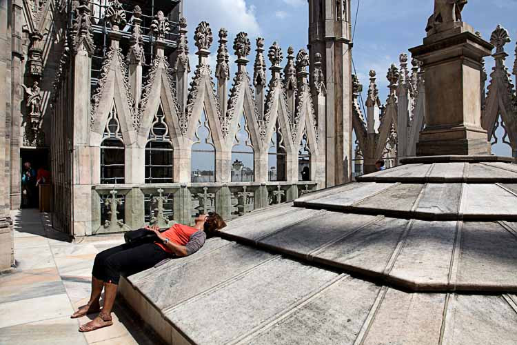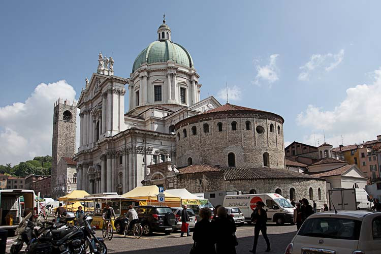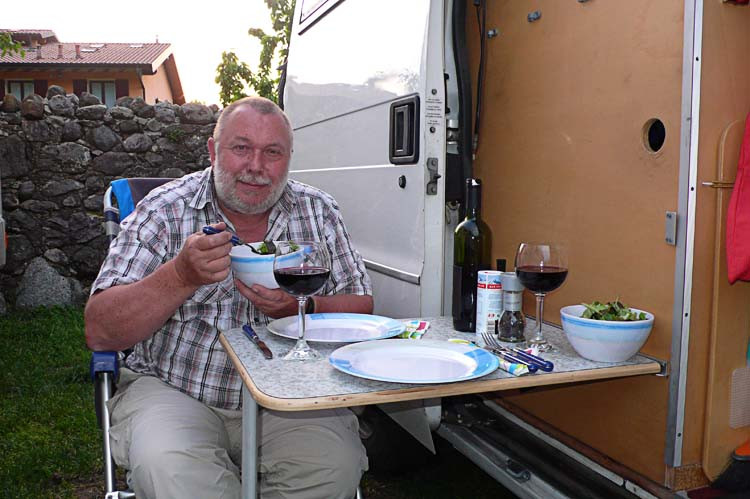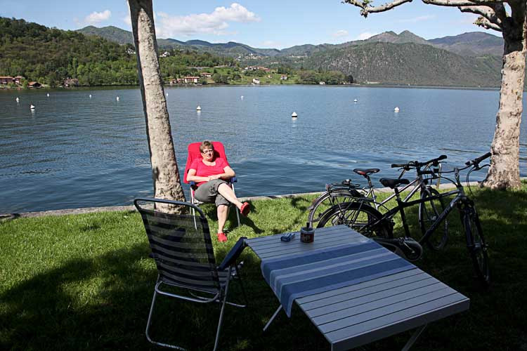 Der heurige Frühjahrsurlaub führt uns zu den Oberitalienischen Seen. Auf Stadtbesichtigungen in Brescia, Bergamo und Mailand vergessen wir dabei auch nicht. ![]() Hier die Kartendarstellung unserer Reise im Bereich Italien und Schweiz. Tag 01, Dienstag, 30. April Um 15:45 verlasse ich fluchtartig das Büro, um 17:00 Uhr stehen wir schon im Stau auf der A7. Aber nur 20 min. verzögert sich unsere Fahrt. Nach einer Pause am Chiemsee kommen wir gegen 20:30 Uhr nach Innsbruck. Wir suchen den SP in Kranebitter, finden aber nur einen CP. Da wollen wir nicht bleiben, so suchen wir uns einen SP beim Hotel Humlerhof in Nösslach, in der Nähe von Gries am Brenner. Wir kommen gegen 22:00 Uhr dort an, trinken noch ein Achterl und zahlen für die Nacht € 10,-. ![]() ![]() ![]() Tag 02, Mittwoch, 1. Mai Um 07:30 Uhr gibt es Frühstück im Hotel. Meiner Meinung nach zu teuer, € 12,- pro Person und ein nicht so tolles Frühstücksbuffett. Die € 10,- für die Nächtigung werden abgezogen. Wir fahren über den Brenner nach Sterzing und biegen dann von der Autobahn ab, Richtung Jaufenpaß. Auf 2094m Seehöhe liegt noch viel Schnee, die Straße ist aber frei. ![]() Wir kommen nach Meran, der Parkplatz bei der Therme entpuppt sich als Parkhaus. Da sind wir natürlich zu hoch. Wir drehen ein paar Runden, kein Parkplatz frei! Dann steuern wir den CP am Tennisplatz an, dort stehen wir gut und zentrumsnah (€ 28,50 ohne Strom). Den ganzen Nachmittag aalen wir uns im warmen Wasser der Therme, die verschiedenen Pools haben Temperaturen zwischen 18 und 37 Grad. (Die 18 Grad Pools lassen wir aus). ![]() Mittags gibt es im Restaurant Nudeln mit Fleischsauce und Lasagne, dann endlich einen wunderbaren Espresso. Gegen 18:00 Uhr verlassen wir die Therme, zurück beim Auto gibt es erst einmal Abendessen. Dann machen wir uns stadtfein und gehen noch einmal zurück ins Zentrum. Wie preiswert ist doch ein Auslagenbummel, wenn die Geschäfte geschlossen haben! Tag 03, Donnerstag, 2. Mai Zeitig in der Früh werde ich von schweren Tropfen geweckt, die auf das Dach trommeln. Ich drehe mich noch einmal um, um 08:00 Uhr werde ich wieder wach. Da wollten wir doch schon längst unterwegs sein! Ist auch schon egal, wir frühstücken erst einmal ausgiebig, gegen 09:30 fahren wir dann ab. Eine gute Stunde später kommen wir auf dem SP am Kalterersee an (€15,- icl. Strom, Dusche, WC und V/E). Wir richten uns ein, dann kommen die Räder vom Auto. Im Uhrzeigersinn umrunden wir den See, hat uns aber nicht so toll gefallen. ![]() ![]() ![]() Auf der Ostseite zuerst auf einem Wander- und Radweg, da brauchen die Fußgänger die ganze Breite. Dann auf einer engen und wenig befahrenen Straße, aber mit kaum einem Blick auf den See. Wieder ohne Seeblick zurück auf die Hauptstraße, hier viel Autoverkehr. Zurück am SP deponieren wir die Räder und gehen zum Seeufer. ![]() ![]() In einem Gastgarten genießen wir Kaffee und frische Erdbeeren, sind wirklich schon sehr geschmackvoll. Wir räumen noch die Sesseln ins Freie und genießen das warme Frühlingswetter. 2 Flaschen Südtiroler Rotwein warten darauf, geleert zu werden. Heute Abend wird zum ersten Mal gekocht. Tag 04, Freitag, 3. Mai Frühstück um ½ 8 Uhr, dann nützen wir die V/E. Wir fahren auf der Bundesstr. Richtung Riva am Gardasee. Ca. 10 km nördlich von Arco, in Sarche, finden wir einen großen Supermarkt. Wir kaufen Fleisch für die abendliche Grillerei, ein paar Flaschen Wein, Brot und Schinken. Über Riva del Garda fahren wir zu der Cascada Varone. ![]() Wir zahlen € 5,50 pro Person, der 100m hohe Wasserfall ist wirklich beeindruckend. Er fällt aber nicht an einem Felshang in die Tiefe, sondern hat einen Canyon in den Fels gewaschen. Mehrere Stollen führen zum Wasserfall, wir haben die Regenponchos an, sonst wären wir im Nu nass bis auf die Haut. ![]() ![]() ![]() Weiterfahrt durch Riva an das Westufer des Gardasees. Durch viele Tunnels führt die enge kurvenreiche Straße an senkrecht aufsteigenden Felswänden entlang nach Südwesten. Bei Salo verlassen wir die Hauptstraße, um auf einer der Halbinsel nahe der Stadt Manerba del Garda auf den CP San Biagio zu landen. Wir haben Glück, heute ist der letzte Tag der Vorsaison, da zahlen wir ohne Strom „nur“ € 31,- Für den Strom noch einmal € 2,-, der wird nach Verbrauch abgerechnet. ![]() ![]() ![]() Wir verbringen ein paar Stunden mit Lesen, dann wird der Griller angeheizt. Das Fleisch hat besser ausgesehen, als es dann ist, aber die Gemüsepackerl schmecken gut. Dazu frisch gegrillte Vollkornweckerl und Baguette. Natürlich darf ein echter Kalterer Wein nicht fehlen. Der Tisch bleibt über Nacht vor dem Auto stehen, vielleicht können wir morgen draußen frühstücken. Fortsetzung folgt.... Hallo Alfred, Da Wir uns den Seen von Süden her nähern, nächste Woche, bin ich begierig auf neue tips für diese Gegend. Sehr schöner Bericht bisher. Hoffentlich gehts so gut weiter. Wolfgang Tag 05, Samstag, 4. Mai Wir haben den Frühstückstisch schon fast fertig im Freien gedeckt, da ziehen schwarze Wolken auf. Blitzschnell verstaue ich Tisch, Sesseln und den Griller im Auto. Und kaum sitzen wir im Womo beim Frühstück, lacht auch schon wieder die Sonne. Na egal, so bekommen wir wenigstens keinen Sonnenbrand. Gegen 09:00 Uhr fahren wir ab, in der großen Stadt Brescia lassen wir uns vom Navi in die Innenstadt zu einem Parkhaus führen. Aber noch bevor wir dorthin kommen, finde ich in einer Seitenstraße eine Parklücke. Nicht all zu groß, aber mit Einweisung von Renate ganz passend. Wir gehen keine 5 min. zur Piazza dela Vittoria. ![]() Die vielen Standln des Samstagmarktes versperren die Sicht auf die Prunkbauten, die den Marktplatz säumen. Es wird Zeit zu einem Cappucino und einem Espresso und kurz darauf sind wir um € 3,- ärmer und voller Entdeckerlust. Die Rotonda, der kreisförmige alte Dom und gleich daneben der Duomo Nuovo sind herrliche Sakralbauten. ![]() ![]() ![]() ![]() ![]() Der Zieleinlauf 