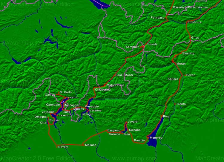 Hier die Kartendarstellung unserer Reise im Bereich Italien und Schweiz.