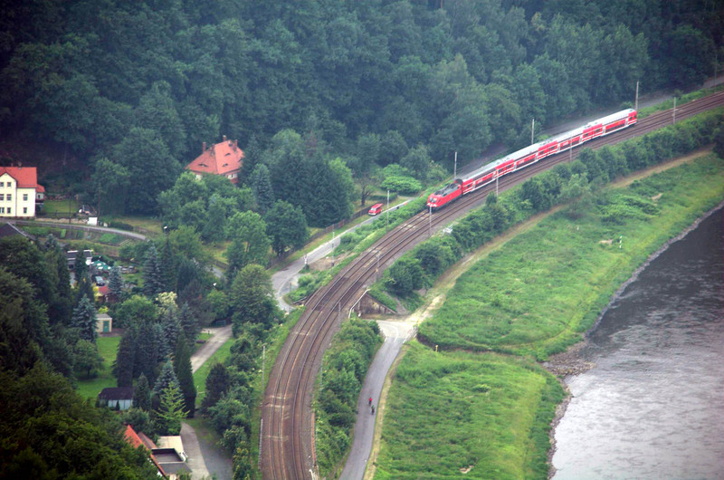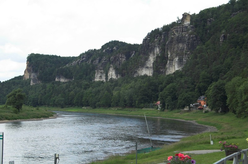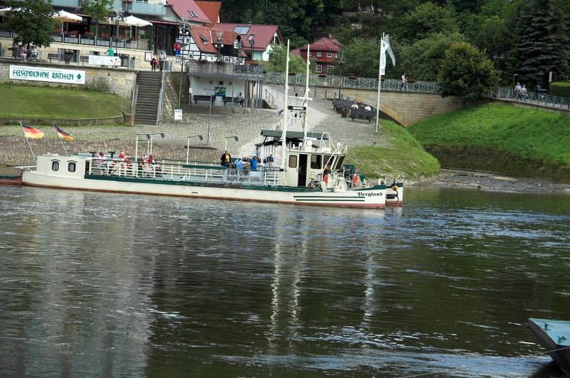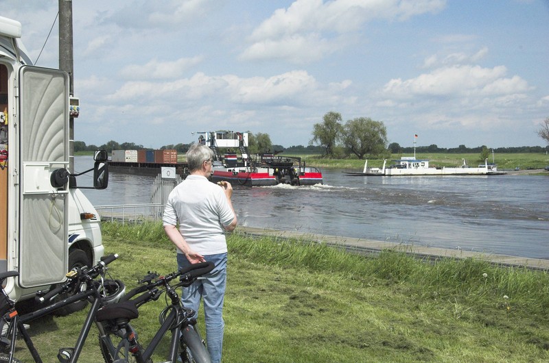 zweiter Tag, selber Stellplatz, rechtselbisch bis Rathen, mit Gierseilfähre Elbe überquert dann linkselbisch bis Pirna, ca. 35 km.
