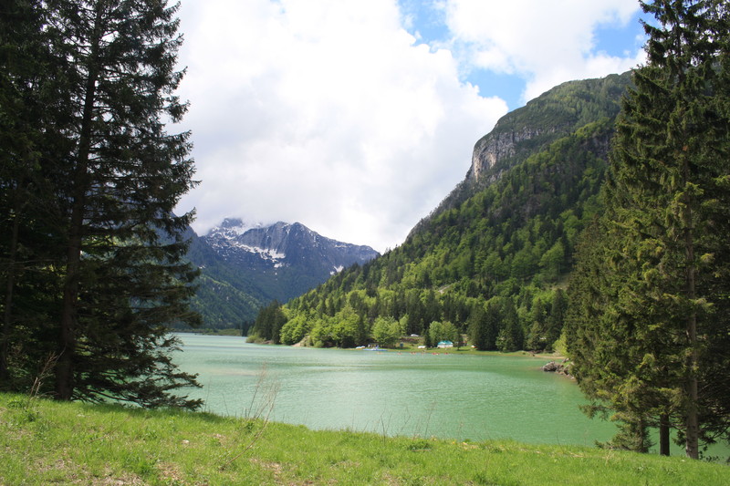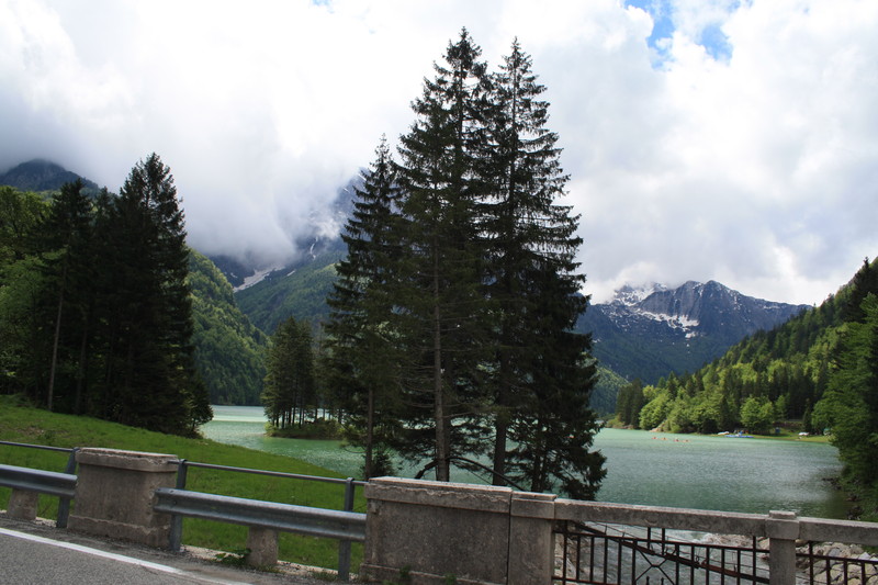 kurz vor der Grenze zu SLO gibt es die Möglichkeit eine schöne Rast einzulegen, den dort schimmert das Wasser des Predilsees durch die Bäume. Leider ist der einzige größere Parkplatz nicht für normale Womos befahrbar, aber es gibt ein paar Parkbuchten dort.