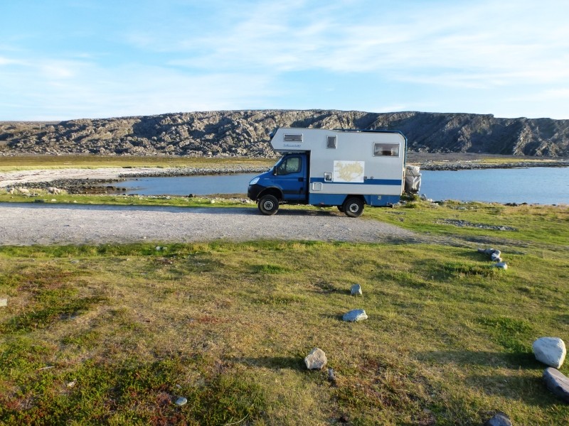 Dann tankt noch kräftig insbesondere bevor ihr nach Norwegen kommt! Aktuelle Preise in Nordnorwergen: 1,80-185€; in S: ca. 1,60€ Beste und weiterhin gute Fahrt Otone (aktuell am Nordkapp) Herzlichen Dank für diesen Hinweis Habe die Ehre Gogolo Wie wunderschön! Vielen Dank für den wunderbaren Bericht, wir haben ihn zu zweit genossen. Schöne Tage und weiterhin gute Fahrt! Mobilistin Bei uns war es gottseidank nicht so heiß wie in Deutschland zur Zeit der Hitzewelle(n), aber trotzdem hatten wir ein wunderschönes Wetter mit viel, viel Sonnenschein, der von 2:30 Uhr morgens bis knapp 24 Uhr abends andauerte. Die Temperaturen lagen zwischen 25 und 27°C. Das war auch der Anlass, dass wir in Kemijärvi beschlossen haben, noch einen Tag anzuhängen und insgesamt vier Tage zu bleiben. Da war viel Zeit für Ausflüge mit den Pedelecs in die nähere und weitere Umgebung. Bei einem der Radausflüge waren plötzlich Rentiere auf der Straße. Während sich diese Tiere von Pkw und Wohnmobilen nicht abschrecken lassen und ganz gemächlich weiter die Straße entlang spazieren wenn man näher kommt, haben sie vor Fahrrädern höllischen Respekt. Offensichtlich kennen die Tiere so etwas noch nicht. Auf alle Fälle haben die Rentiere zu galoppieren begonnen und anstatt in den Wald zu laufen sind sie die Straße entlang geflüchtet. Ich habe aus Spaß das Tempo erhöht bis auf gut 27kmh – und so schnell waren die Tiere auch. Die Hufe haben geklappert und mir ist nach einiger Zeit auch die Zunge heraus gehangen. Bis endlich das Leittier in den Wald abgebogen ist… Das ist ja gerade das schöne am reisen mit dem Wohnmobil: man ist unabhängig und kann (genügend Zeit vorausgesetzt) ständig umplanen und die Route variieren. Das machen wir auch und sind bis zum Inarisee gefahren haben uns dort am Campingplatz Ukonjärvi bei Ivalo häuslich eingerichtet. Auf diesem Platz waren wir schon in den neunziger Jahren des letzten Jahrtausends mit unserem alten Hanomag. Und auch den gleichen Stellplatz haben wir wieder ergattert, gleich beim See mit unverstellbaren, grandiosen Ausblick – insbesondere bei Sonnenuntergang. Und wir genießen wieder die Zeit und beschließen hier ein paar Tage Urlaub von den „Reisestrapazen“ zu machen. Einerseits weil das Wetter so gut und schön warm ist, andererseits weil Gogoline Geburtstag hat. An dieser Stelle allen Gratulanten die per Telefon, SMS oder eMail daran gedacht haben ein herzliches „Dankeschön“. ![]() Aber nicht nur der Geburtstag wurde gefeiert, auch ein paar Wartungsarbeiten wie z.B. das reinigen der Solarzellen, enteisen des Kühlschranks waren notwendig. Auch Ausflüge standen auf dem „Urlaubsprogramm“ am Inarisee. So fuhren wir zum Inari Lake Scenic View (mit dem Gogolobil), die Straße hatte über 20% Steigung. Am Vortag habe ich versucht, diese Strecke mit dem eBike zu fahren, aber es war doch zu steil für mich und nach dem zweiten 20%-Stück musste ich umdrehen. Von dort oben hat man eine prächte Aussicht auf den südlichen Teil des Inarisees und es ist auch ein kleines Museum, dort oben. Der Eintrittspreis ist mit 6 € pro Person auch ganz schön stolz. Dann fuhren wir noch zum Ort Inari und besuchten dort das bekannte Samen-Museum Siida (Eintritt nur 8€, bei wesentlich größeren Leistungen und Inhalten). Dort kann man einen Einblick in die Welt der Sami und ihre nicht ganz einfachen Lebensumstände bekommen. Auch ein hochinteressantes Freilichtmuseum ist dabei. ![]() Irgendwann, nachdem wir genügend ausgespannt hatten, haben wir den Inarisee verlassen und sind aus Finnland ausgereist. Die Grenze zu Norwegen war fast nicht bemerkbar, zumindest wurden wir nicht angehalten oder kontrolliert. Unsere Reise führte uns zunächst nach Kirkenes um dort an einem Geldautomaten norwegische Kronen zu ziehen (mit dem Euro wäre es viel einfacher). Dann ging unsere Fahrt bei weiterhin 20°C warmen Wetter bis in die letzte Ecke von Norwegen, ganz im Nordosten, gleich zur Grenze nach Russland. Die Ecke heißt Grense-Jakobselv. Wir stehen dort direkt an der Barents-See. Weit draußen waren ein paar Buckelwale, man sah aber nur den „Blas“ und den Rücken der Tiere. Manchmal schwimmen auch weiße Beluga-Wale in den Fjord, aber wir hatten leider nicht das Glück, diese zu sehen. ![]() Die Straße zum letzten Eck von Norwegen führt über eine Strecke von rund 8km unmittelbar am Grenzfluss zwischen Norwegen und Russland entlang. Die Flussmitte ist die Grenze. Beiderseits des Flusses sind Grenzpfähle und Hinweisschilder aufgestellt. Gegenüber auf der russischen Seite sind auch Wachtürme, aber keine Menschenseele ist auf russischer Seite zu erblicken. Ich bin mir aber sicher, dass wir genau beobachtet wurden, was wir hier so machen und dass wir ja nicht die Grenze überschreiten. Ganz hinten bei Jakobselv ist auch eine kleine malerische Kirche aus Stein, daneben ein Friedhof, auf dem auch russische Menschen begraben sind. ![]() ![]() Nach einer ruhigen Nacht bei der Grense-Jakobselv unmittelbar am Meer mit einer fantastischen Aussicht auf die Barents-See sind wir zurück nach Kirkenes gefahren. In Kirkenes kauften wir ein, es fing an zu regnen es ist windstill und eher feucht-warm. Kirkenes selbst ist ein eher unspektakuläre Hafenstadt, die nicht sonderlich sehenswert ist. In Norwegen kann man leicht zum Nichtraucher werden, denn die Preise für Zigaretten sind exorbitant hoch: eine Schachtel kostet den stolzen Preis von 11,70€. Gogoline meinte, dass da sicher der Filter vergoldet ist. Auch sonst sind die Lebenshaltungskosten schon merklich höher als bei uns in Deutschland. Diesel kostet der Liter rund 1,85€! Und als ich in einer Bäckerei fünf(!!!) Semmeln kaufte, dann zahlte ich dafür den stolzen Preis von 75 NOK = 9,60 €. Trotzdem lassen wir uns davon die Reise nicht vermiesen und genießen jede Stunde in diesem schönen Land. Von Kirkenes aus ging die Reise weiter, wieder der E75 entlang nach Norden am Varangerfjord entlang über V